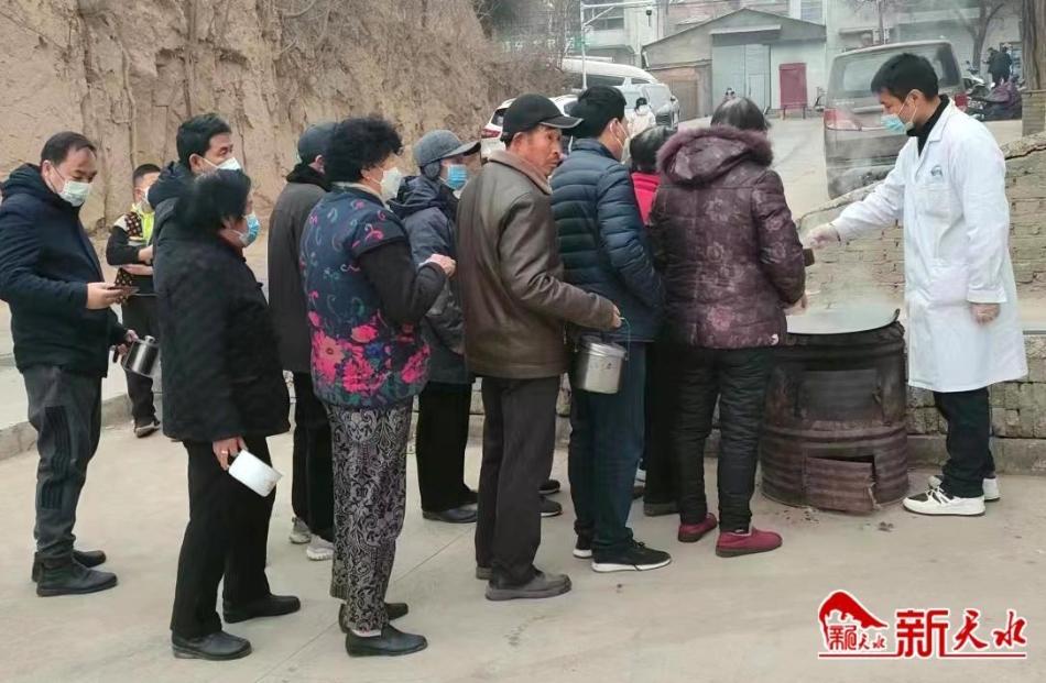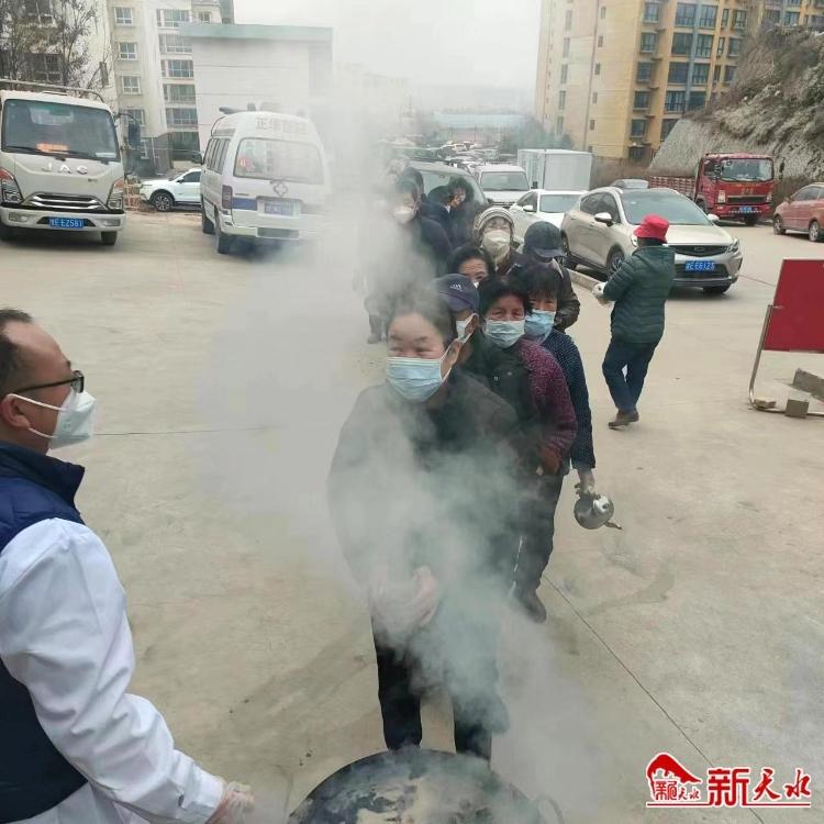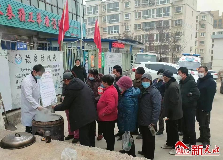 新天水讯【记者王莹 罗馨】1月8日上午,位于麦积区花牛镇白崖村的天水正华康复医院门前人头攒动,许多人拿着保温杯、小盆、小罐子等,排队领取由这家医院免费发放的新冠康复润肺中药汤剂。领好药的群众一边喝着中药汤剂,一边向工作人员连声道谢。