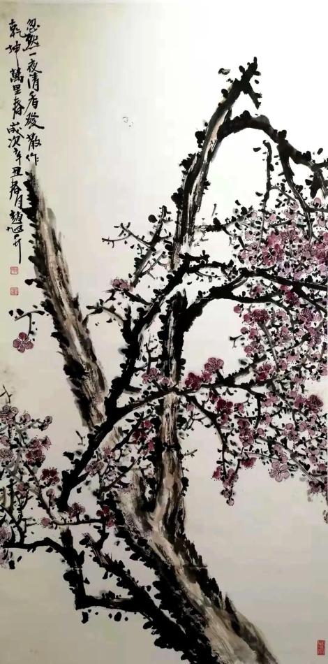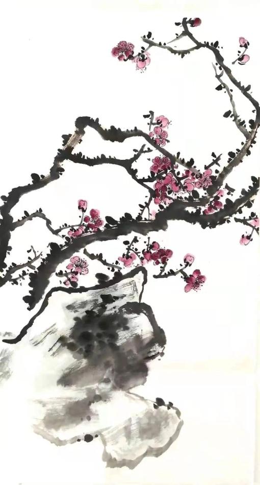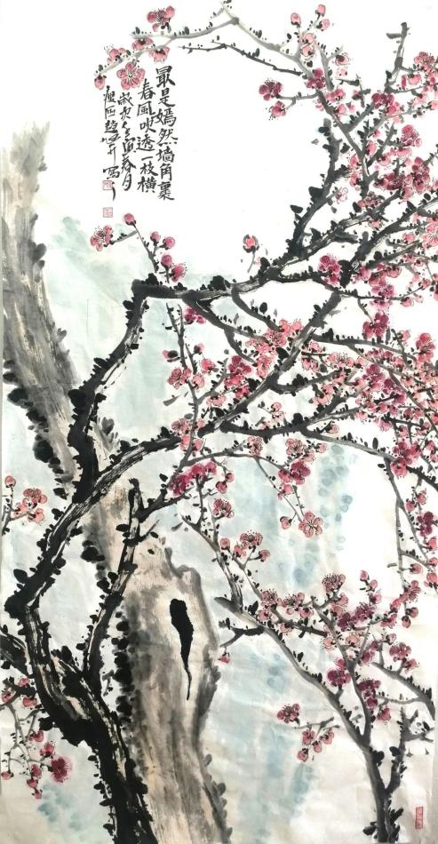 《嫣然墙角一枝梅》 68cm×136cm