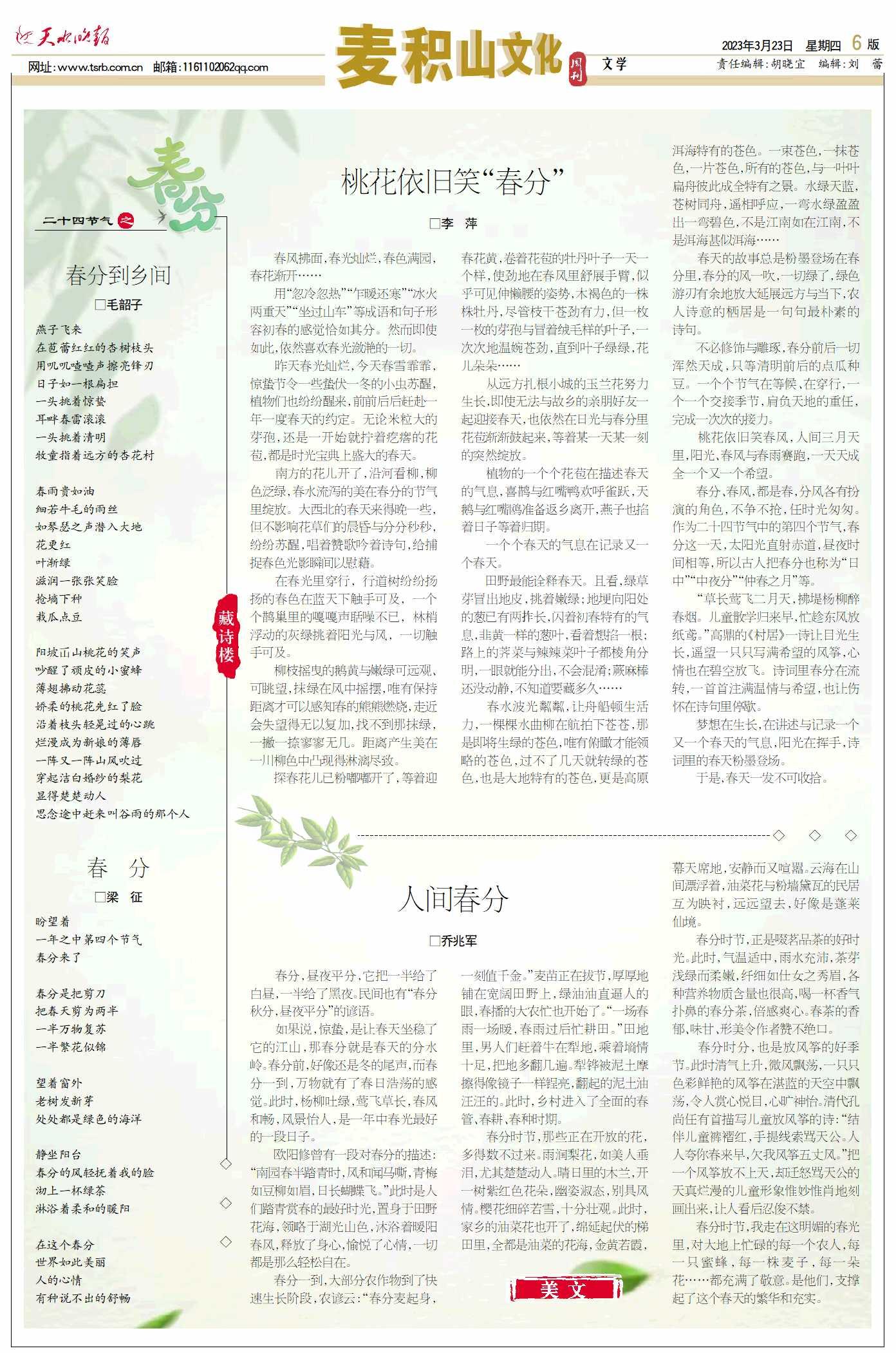 “草长莺飞二月天,拂堤杨柳醉春烟。儿童散学归来早,忙趁东风放纸鸢。”高鼎的《村居》一诗让目光生长,遥望一只只写满希望的风筝,心情也在碧空放飞。诗词里春分在流转,一首首注满温情与希望,也让伤怀在诗句里停歇。
