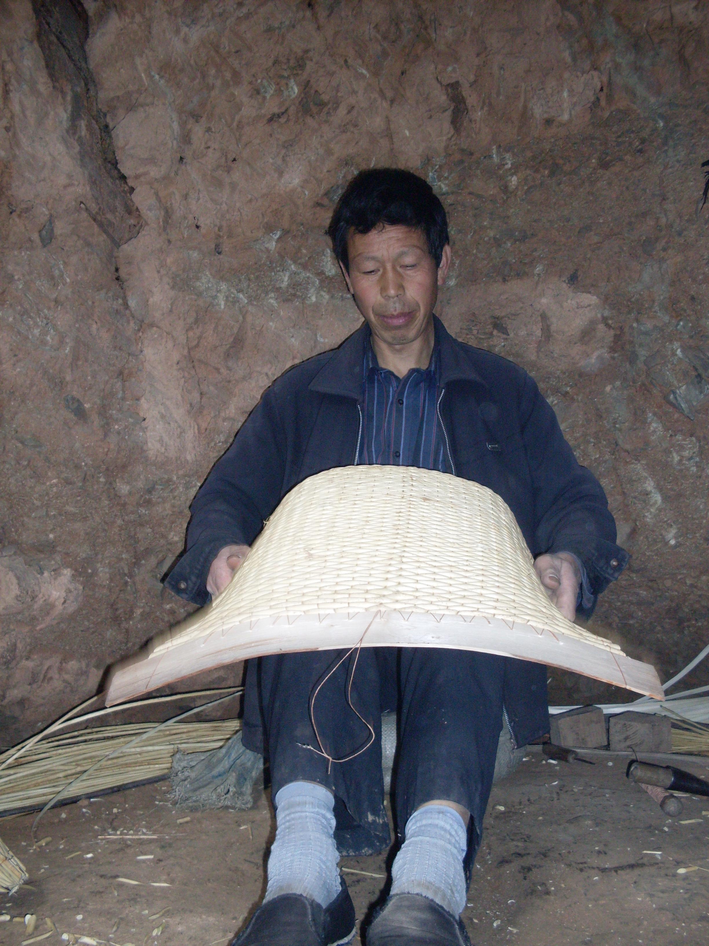 柳编要在地窖进行,避风潮湿,才能保持柔韧,室外见风易干硬,弄不好就折断了。村子北面的山坡上,稍朝上攀走几步,窖口呈四方形仰面朝天,入口搭木梯容一人进出。