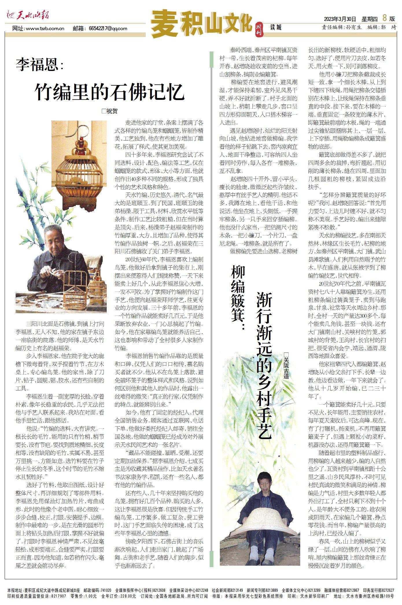 三阳川北面是石佛镇,到镇上打问李福恩,无人不知,他的家在镇子东边一座临街的院落。他的师傅,是天水竹编历史上有名的赵福荣。