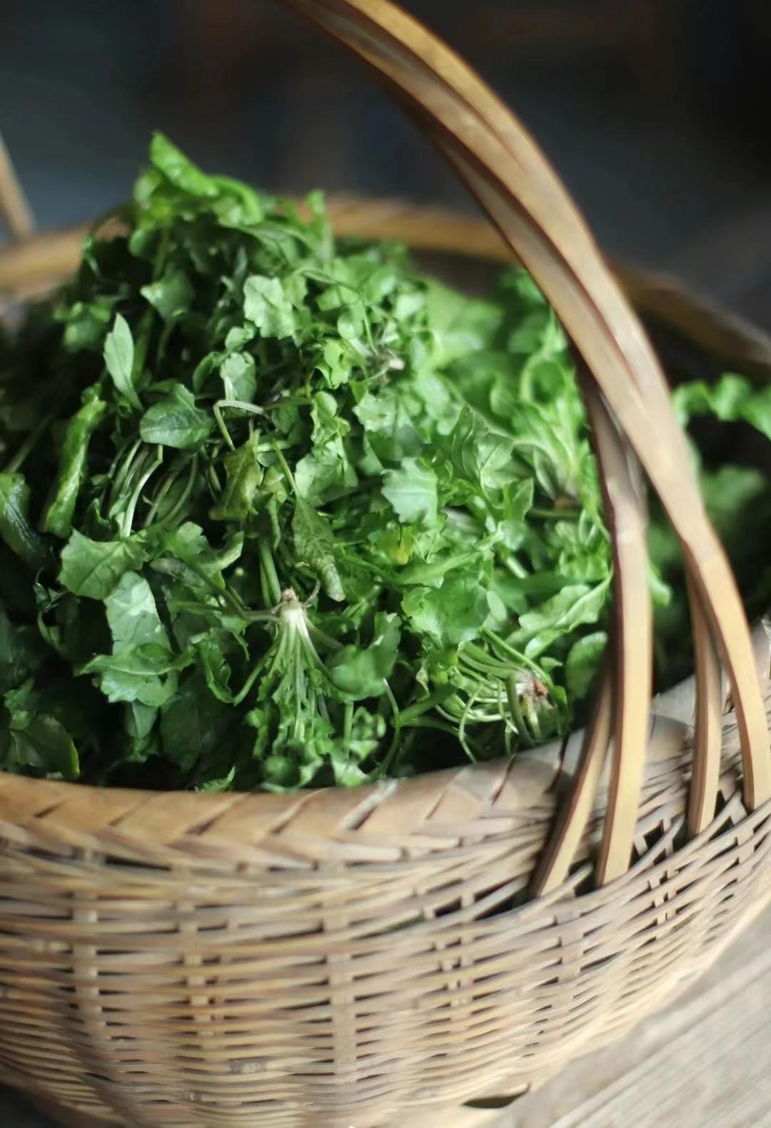 没有亲手采摘到荠菜,多少有些遗憾。于是,周末早早来到花鸟市场,想着弥补失落的心情,果真不出所料,过了水果区,看到许多人拥簇在一个女人的菜筐前。我赶忙挤了进去,那正是我心心念念的荠菜,可仔细一看,又有一点不像,叶子呈圆弧状,太大太饱满,叶边没有了小小齿轮,看上去怪怪的。