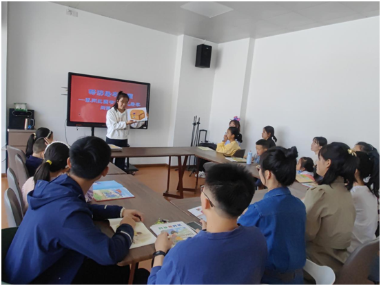 来自天水师范学院小学教育专业的实习生作为图书馆志愿者,为少儿小读者开展绘本阅读,并和大家分享绘本故事《长鼻子折了》等少儿读物。