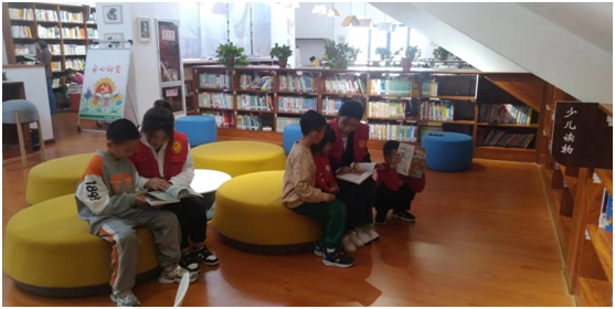 志愿者老师用生动有趣的语言和诙谐幽默的肢体动作,把故事情境活灵活现展现给大家。在三楼儿童阅览区,为孩子们讲绘本故事,并和少儿一起现场互动,现场气氛热烈,深受家长和少儿的喜爱。