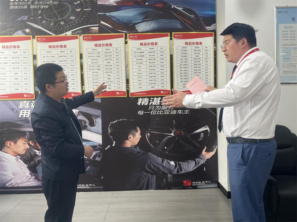 检查人员按照法规现场检查了汽车销售企业是否在经营场所明示销售价格、服务收费标准和“三包”信息;汽车销售档案是否规范;有无强制消费者购买保险或者强制为其提供代办车辆注册登记等服务。同时对企业安全生产进行督查,现场向企业赠送了《汽车销售管理办法》宣传册。