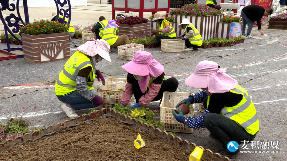 在麦积区马跑泉市政广场、盘旋路、火车站等地,园林工人们将一盆盆鲜花按照不同颜色,有序摆放在马路两旁的花坛中,现场热火朝天、工作井然有序。