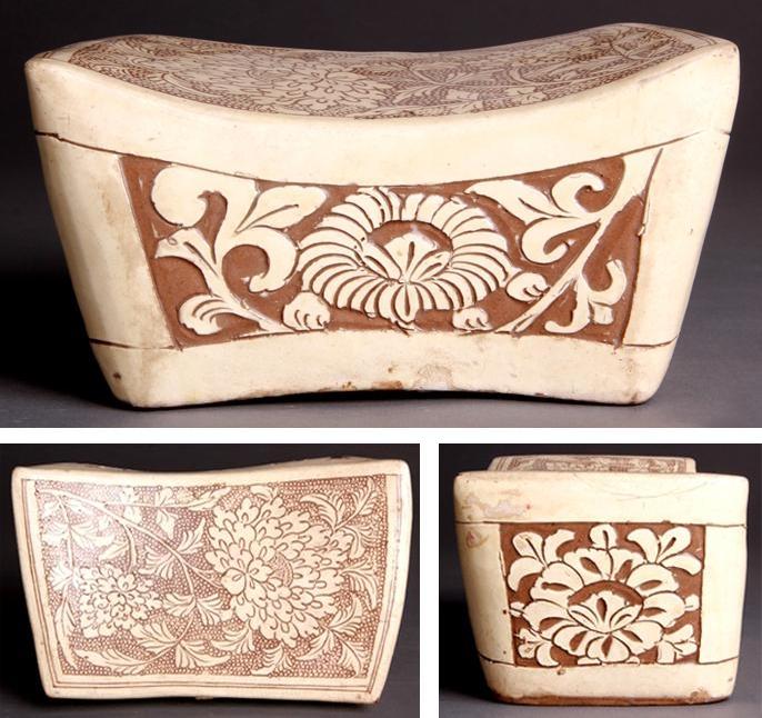 【人文】宋磁州窑珍珠地刻牡丹纹瓷枕