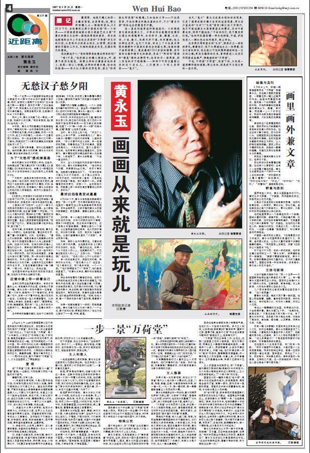 2007年4月28日上午,10余位香港画家从位于故宫东侧的木棉花酒店出发,前往黄永玉在京郊的居所“万荷堂”,我作为唯一的记者搭乘了他们的巴士。于他们而言,“万荷堂”是个“从未亲见、心向往之”的神秘之地;于我而言,算是故地重游——2001年的初冬季节,我有幸随朋友去过一趟。在汽车疾驰的一个多小时里,前一次的访问幻化成一幅幅画面浮现在我眼前:满院子追逐嘶咬的大狗,宽敞到有点浪费面积的洗手间,六根刚刚从缅甸运来的巨木,戴着黑毡帽、雪茄不离手的主人……一晃5年半过去,勤于丹青的“万荷堂”主人,又为这些画面填上哪些颜色?