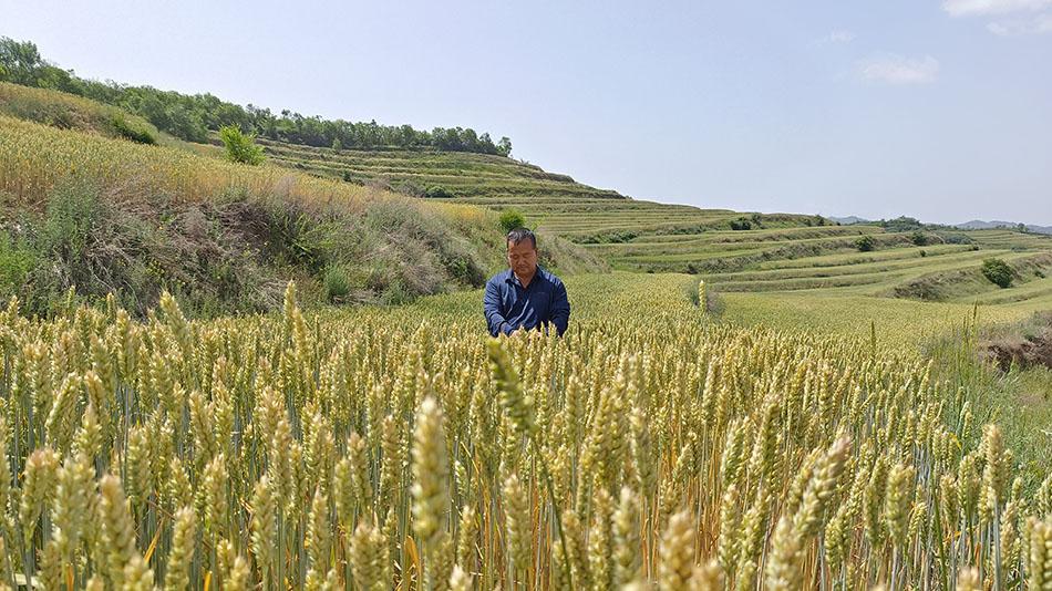 “身后这一片区域的小麦都是我种植的,还有山后面的区域加起来有500亩,主要种的是兰天36号,再过五六天就能收割。今年的长势很好,亩产估计比去年的好一点,在900斤以上。”秦州区丰登种植农民专业合作社负责人赵兵全说。