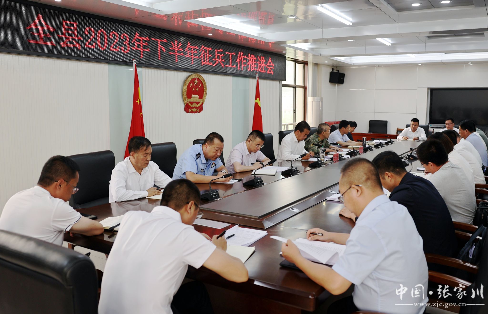 新天水讯 据张家川县融媒体中心消息 7月18日,张家川县召开2023年下半年征兵工作推进会议,深入贯彻全国2023年下半年征兵工作电视电话会议精神,传达学习省市征兵工作会议精神和工作要求,安排部署2023年下半年全县征兵工作。县委副书记、县长、县征兵工作领导小组组长马创成出席会议并讲话。县委常委、县人民武装部部长、县征兵工作领导小组副组长党晓军主持会议。