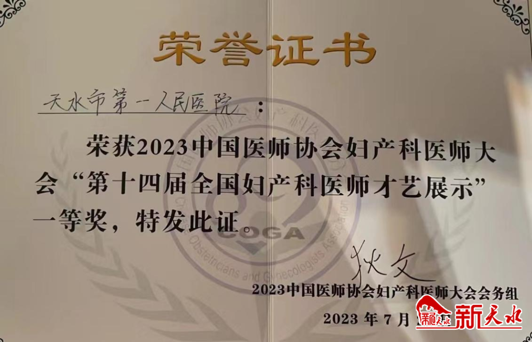 新天水讯 7月27日至30日,由中国医师协会和中国医师协会妇产科医师分会主办,甘肃省医师协会妇产科医师分会和兰大一院承办的2023中国医师协会妇产科医师大会在兰州召开。大会特别举办了第14届“爱我中华”妇产科医师才艺展示,天水市第一人民医院妇产科推送的女子群舞《花花儿》在比赛中荣获一等奖。