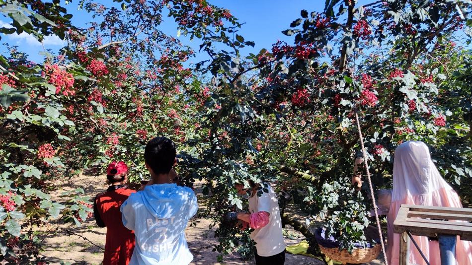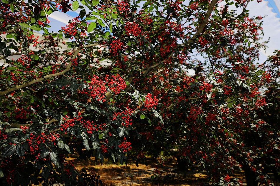 走进千户镇徐王村,只见成排成行的花椒树上,一簇簇颗粒饱满的花椒挂满枝头,微风拂过,阵阵椒香味扑鼻而来,村民和采椒工们穿梭在花椒之间,呈现出一派生机勃勃的丰收景象。