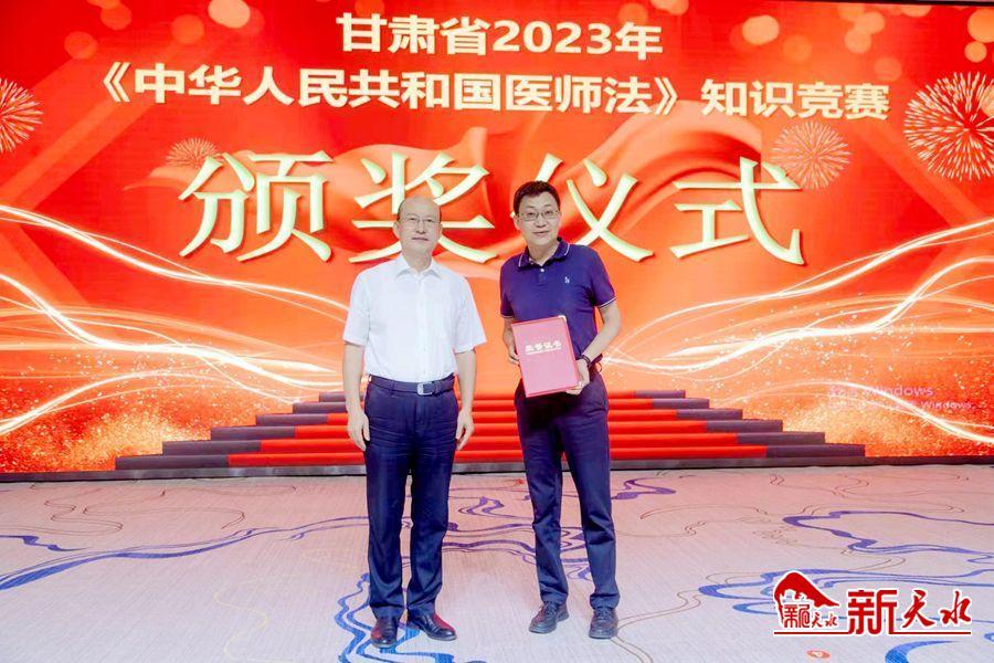 新天水讯【记者王莹】记者日前采访得知,由省卫健委主办,甘肃省医师协会、兰大二院承办的甘肃省2023年《中华人民共和国医师法》知识竞赛于8月3日至4日举行,来自全省各地州市共28支队伍74名队员参赛。经过激烈角逐,我市代表队在比赛中荣获第一名。
