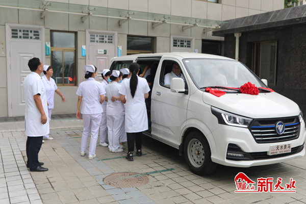 新天水讯 为进一步提升服务品质、优化服务流程,9月7日,市三院在门诊楼外举行新能源转运车启用仪式,院领导、职能科室主任、各科室护士长20余人参加仪式。