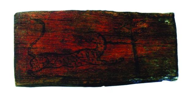 放马滩出土的秦代木牍,墨线勾勒的猛虎(甘肃简牍博物馆藏)