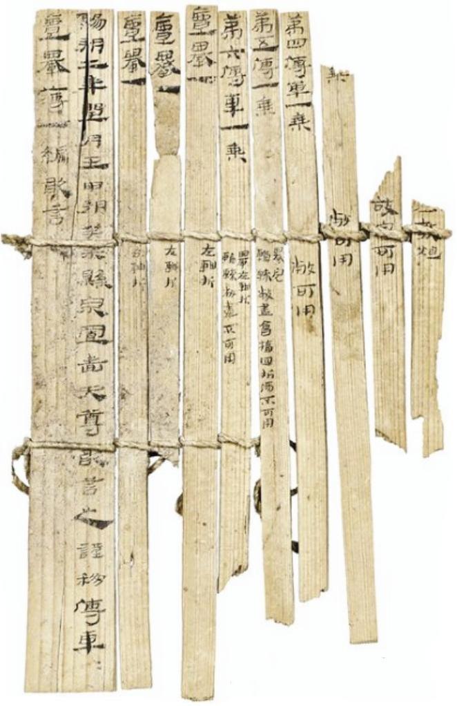 放马滩古墓群里还出土了460枚秦简,具体包括甲种《日书》73枚、乙种《日书》380枚、《墓主记》7枚。简文均以小篆书写,间杂隶书。文字一律书写在篾黄面,篾青面无文字。每简书写一条内容,至一章写完,如有空余,再写不同的章节,其间用大小圆点和粗线段区分,以示分章。