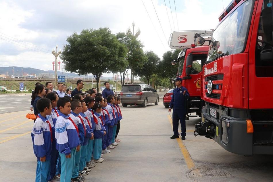 活动中,消防救援人员带领孩子们参观了消防车辆装备器材和消防车库, 还现场展示各种器材装备,并用通俗易懂的语言为小朋友们讲解了各种消防器材的用途、性能以及使用方法。随后,带领小朋友们参观宿舍内务,当小朋友们看到整齐划一的“豆腐块”,不由得发出阵阵感叹,纷纷表示要以消防员叔叔为榜样,向他们学习。最后,小朋友们和老师们走进消防科普教育基地,针对小朋友的年龄特点和心理认知,大队宣传员结合馆内丰富的图文设置、趣味的科普游戏、逼真的情景体验、真实的实物展示深入浅出、通俗易懂地讲解火灾预防、正确拨打119、正确使用灭火器、逃生自救等消防安全常识,在寓教于乐中引导萌娃们认识常见的消防安全标识,了解火灾预防方法,掌握火灾报警流程等逃生自救方法、技能。