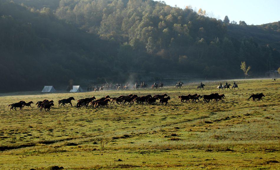 冯河草原又名非子牧场,是秦人先祖秦非子牧马封邑之地。电影《天水之门》剧组正是被这里优美的自然风光和独特的历史文化所吸引,于是决定来此处取景拍摄。据工作人员介绍,此次他们将在冯河草原进行为期两天的取景拍摄,参演电影的30多名群众演员、100多匹马均来自本地。