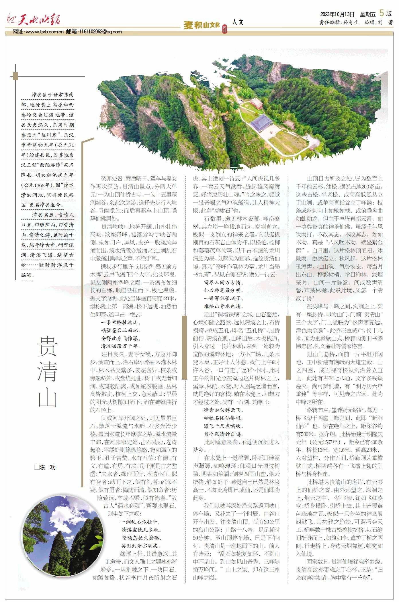 漳县名胜,啧啧人口者,曰遮阳山,曰贵清山。贵清之游,虽时逾十载,然奇峰古寺、峭壁深涧、清溪飞瀑、绝壁古松……犹时时浮现于脑海。