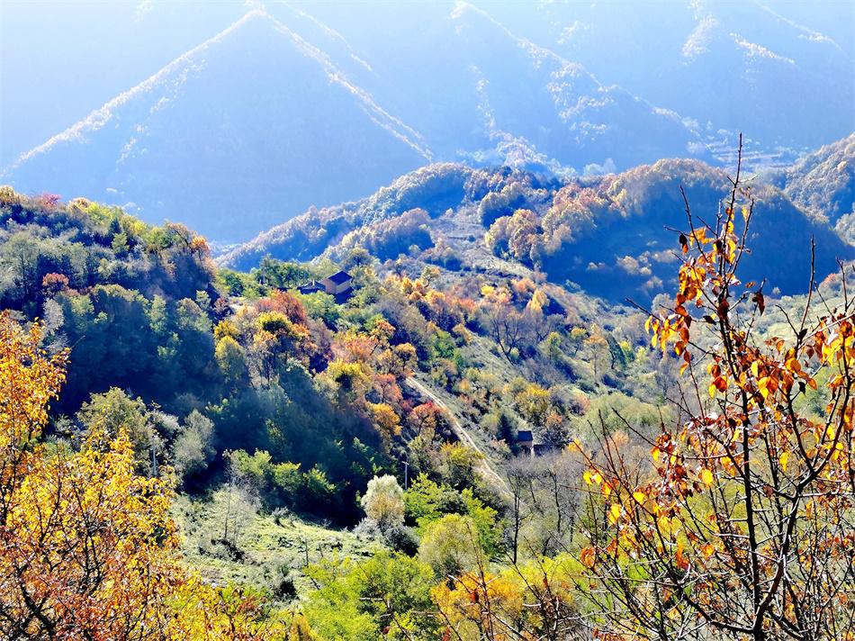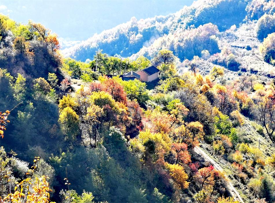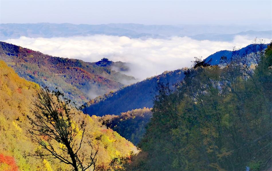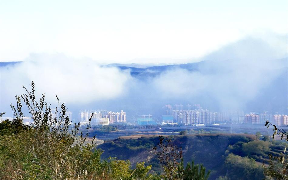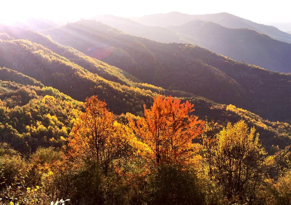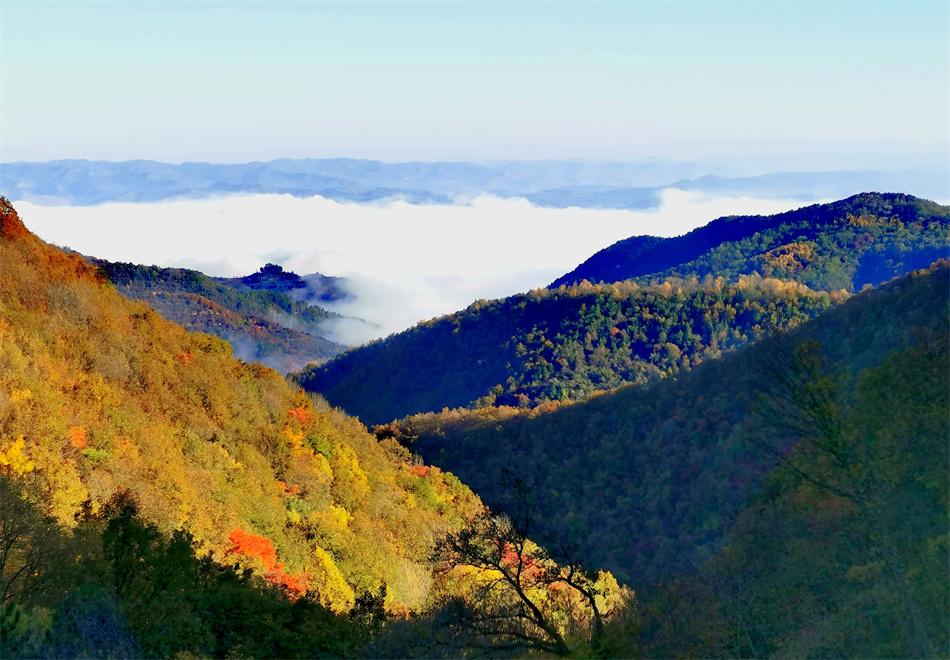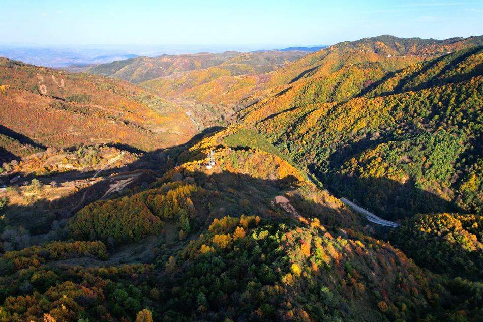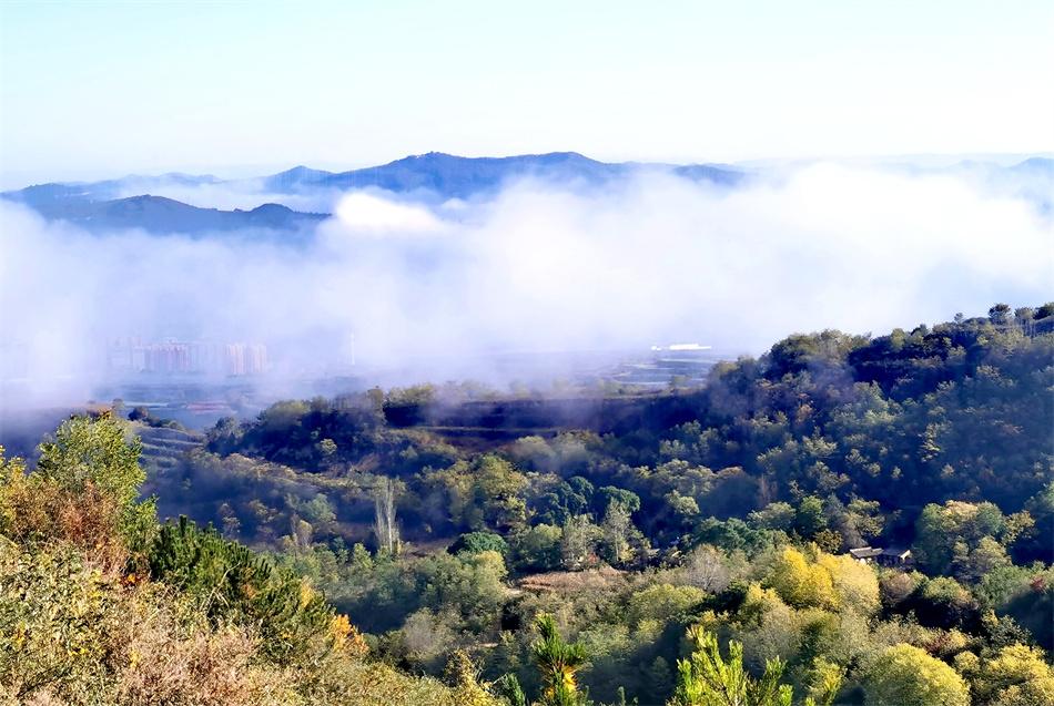 秋日的笔架山氤氲在夕阳的余晕下 金光熠熠