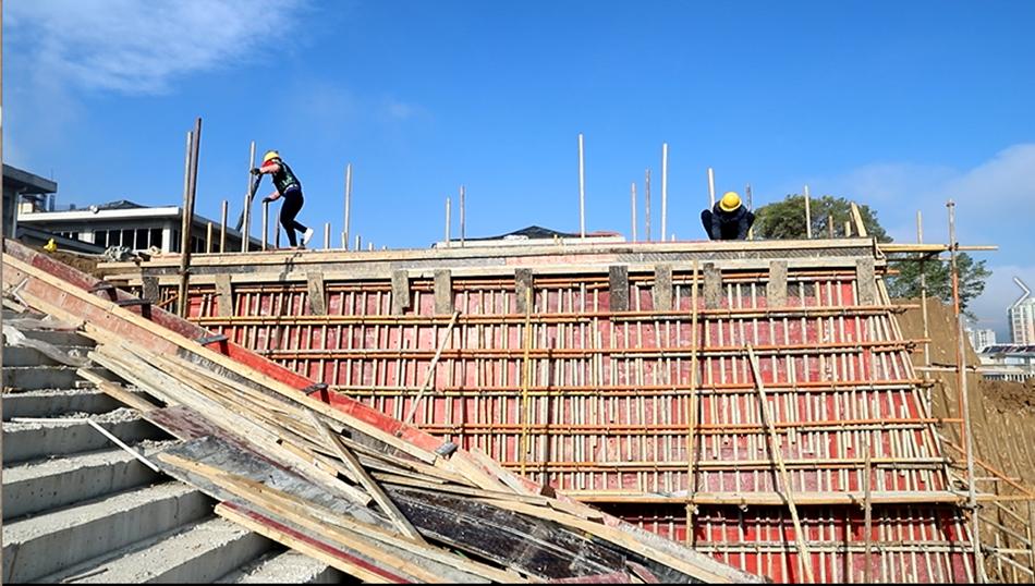 记者来到施工现场看到,挖掘机、推土机等大型机械设备忙碌运转,机器轰鸣,施工方利用晴好天气抢抓进度,工人们在各自岗位上紧锣密鼓地施工作业,各项基建工程有序进行中。