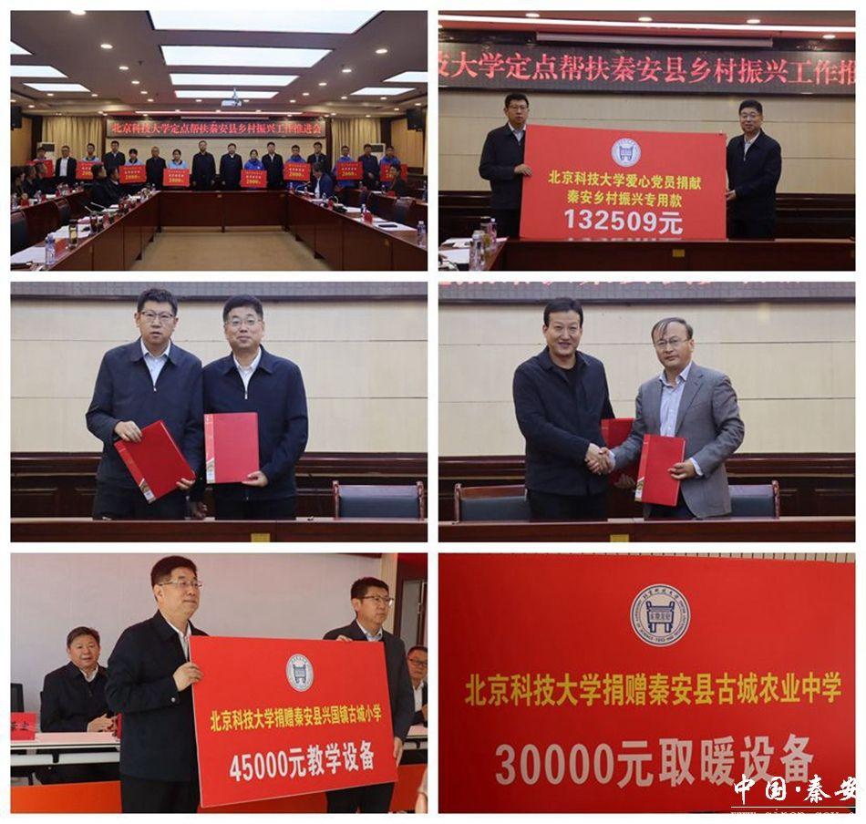 在随后召开的座谈会上,县委副书记、统战部部长姚建国介绍了全县巩固拓展脱贫攻坚成果同乡村振兴有效衔接工作开展情况;副县长景鹏汇报了定点帮扶工作开展情况;北京科技大学校友代表无锡校友会会长高晓峰、甘肃校友会会长马琼做了发言;北京科技大学教育发展基金会和秦安县人民政府签订帮扶协作框架协议;北京科技大学生物农业研究院和秦安县农业农村局签订了帮扶协作框架协议;北京科技大学爱心党员为秦安县捐献乡村振兴专用款132509元并举行了北京科技大学“筑梦奖学金”发放仪式。