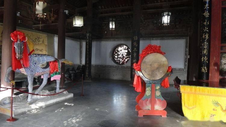 卦台山伏羲庙先天殿和天水伏羲庙先天殿伏羲圣像两侧,都以一面是振翼龙马,一面是河图洛书,天花板上是六十四卦图为主要装饰,这些都是伏羲画卦传说的形象化写照。
