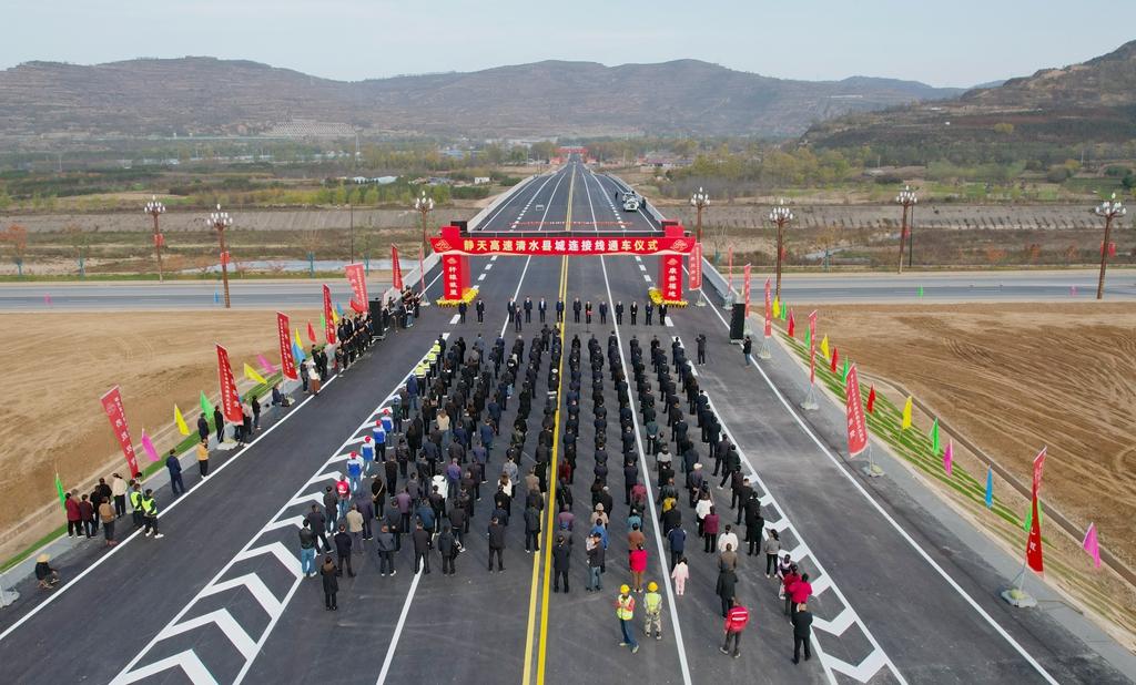静天高速公路清水段是清水县第一条高速公路建设项目,11月3日,静天高速清水县城连接线建成通车,结束了清水县没有高速公路的历史。静天高速清水县城连接线是其重要组成部分,总投资5970万元,于2022年9月启动建设。连接线全长1.96公里,起点位于红堡镇杜川村东侧,与庄天二级公路平交,跨越后川河、牛头河,终点与上邽大道平交,建有2座大桥,牛头河大桥为半苜蓿叶立交,与轩辕大道相接,在西部新城区形成了“一线联两路”的交通布局。