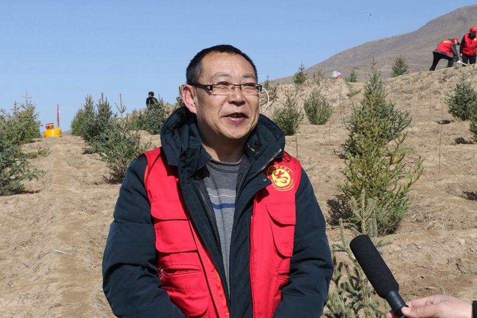 化连海是山丹镇本地村民,听到今年的盘龙山义务植树造林点就在家门口,他和村上的热心人早早地来到了义务植树点,为全县义务植树工作贡献力量。“盘龙山以前是寸草不生,现在是道路修通、水源引进,现在能绿化植树造林,作为一个农民,感觉到有很大的意义,我也感到高兴。”化连海说。
