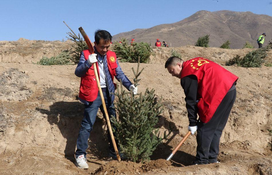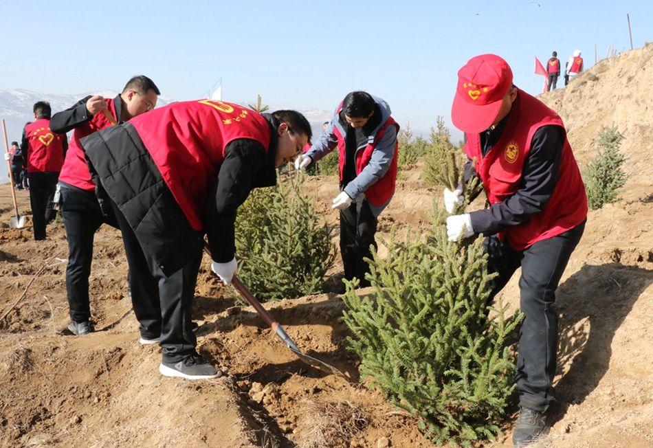 3月11日,在武山县盘龙山义务植树造林点,来自全县各部门的1000余名干部职工和周边群众一同栽下一棵棵云杉、红叶李、刺槐。挥锹挖土、扶树正苗、培实新土、浇水定根,大家分工明确,认真细致,用实际行动为大地披绿。