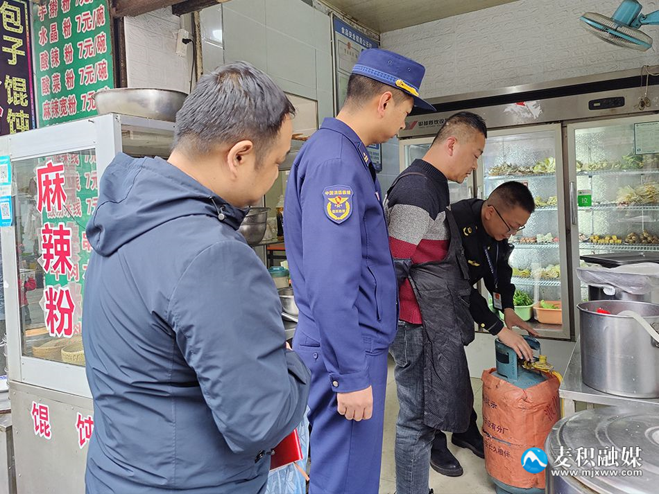 新天水讯 据麦积区融媒体中心消息 为全面提升全区燃气经营使用安全水平,有效防范燃气类安全事故发生,切实保障广大人民群众生命财产安全,3月15日,麦积区住建局联合区应急局、区市场监管局、区城管局、消防大队、道北街道等相关部门单位,对全区餐饮企业燃气安全情况开展专项检查。