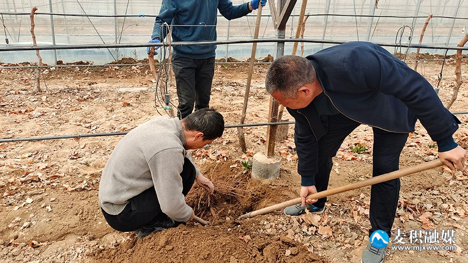 此外,新阳镇的老果园改造正如火如荼地进行当中。在新众创农业公司葡萄基地记者看到,迎着正午的阳光,一棵棵葡萄藤整齐地排列在大棚中,果农正将其中的老果老品种进行挖除更新。管理员何自义告诉记者,由于巨峰葡萄的树体老化和经济效益慢慢下滑,新众创农业公司逐年开始对老树种进行品种更新。“我们准备今年把这些挖着改造一部分,打算种收益较高的阳光玫瑰,缇娜皇后等新品种。”