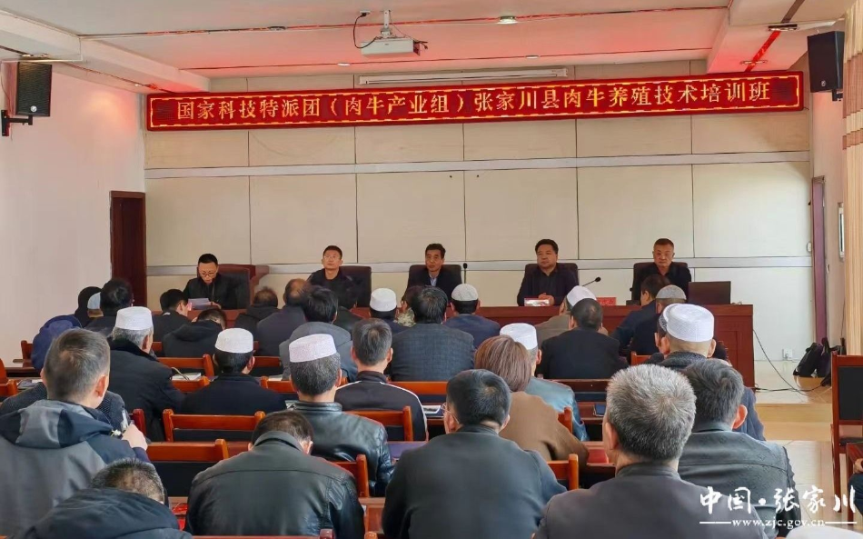 在技术培训班上,肉牛产业组4位专家结合张家川县肉牛产业发展实际和群众所需,分别从肉牛提质增效技术、春季牛呼吸道疾病预防和控制技术、犊牛腹泻与咳喘的中兽医药保健技术、肉牛寄生虫病的危害与防治技术等方面进行了授课和答疑,15个乡镇畜牧技术人员、肉牛养殖场、大户负责人、县畜牧中心技术人员共计100余人参加培训。会后,科技特派团为张家川县肉牛养殖场户发放阿苯达唑、伊维菌素、球虫清等抗寄生虫药物5500瓶(盒),《肉牛高效养殖技术》《放牧牛羊高效养殖综合配套技术》牛羊高各100本。