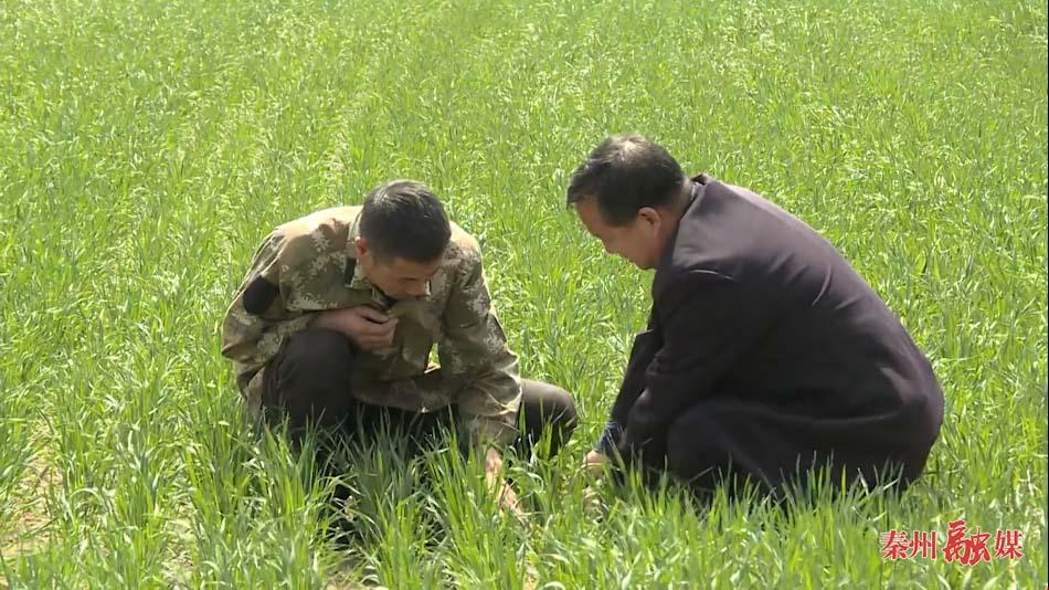 “种的时候,今年大面积都是机播,保墒,今年也没冻,小麦长势也好,比去年还要好一些。”秦州区秦岭镇梨树种养殖家庭农场负责人郭海军说。