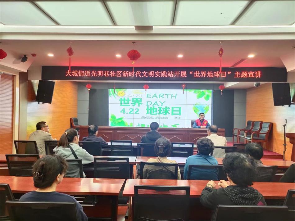 大城街道光明巷社区、天水郡街道暖和湾社区开展主题宣讲活动。活动中,社区志愿者通过图片、视频等形式向居民们介绍了“世界地球日”的来历和意义,为居民们分享垃圾分类小知识,呼吁大家绿色生活,少用塑料袋、快餐盒,爱惜每一滴水,节约每一度电,对随意丢弃垃圾的行为说“不”,共同守护洁净家园。