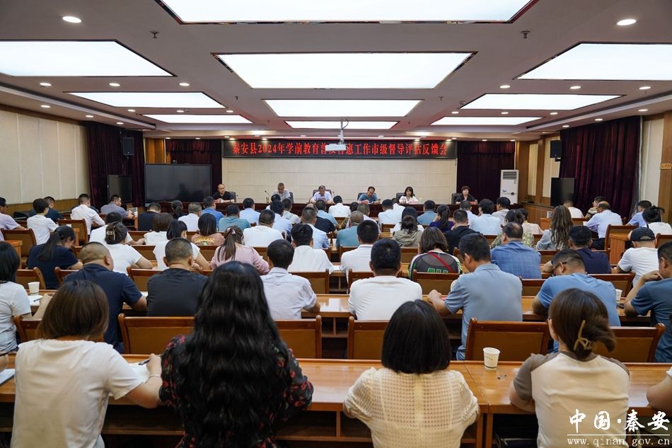 新天水讯 据秦安县融媒体中心消息 5月24日,秦安县2024年学前教育普及普惠工作市级督导评估反馈会召开。市政府督学、市政府教育督导室一级调研员王奎,县委常委、县政府副县长杨涛,县政协副主席李国昌,以及市督导组成员、县直相关部门负责人、园长代表、教育局班子成员及相关股室负责人参加会议。