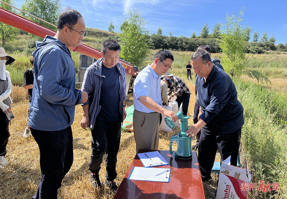 科学的种植,高效的收割,让秦州区麦收工作进展顺利。收割进入尾声阶段,来自西北农林科技大学等科研院所组成的测产专家组,对我区山地种植的冬小麦主要品种进行了现场实收测产。现场测产的品种是兰天36号,测产实收面积2.95亩,籽粒加杂质鲜重是1833.5公斤,籽粒平均含水量18.8%,平均杂质率1.15%,折合标准产量571.26kg/亩。