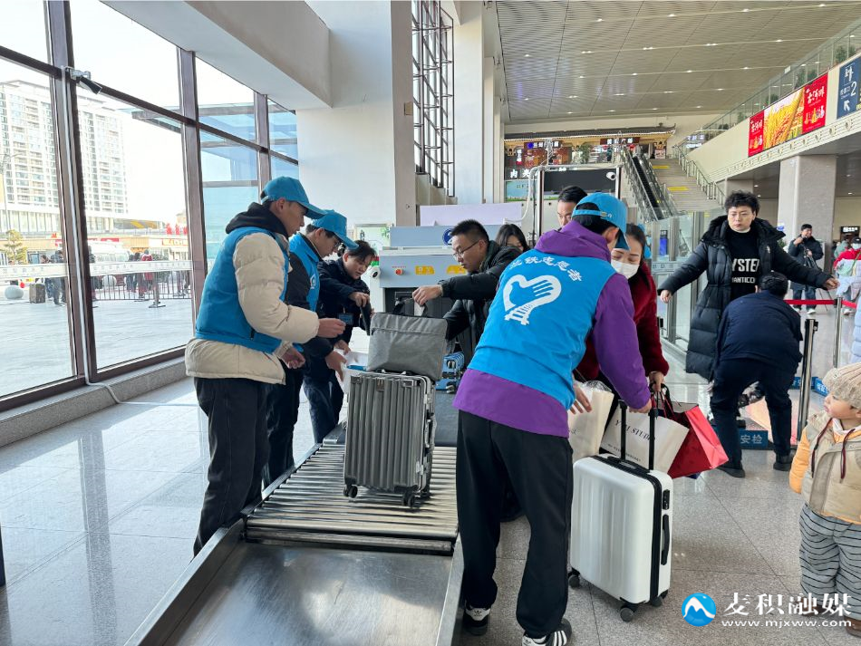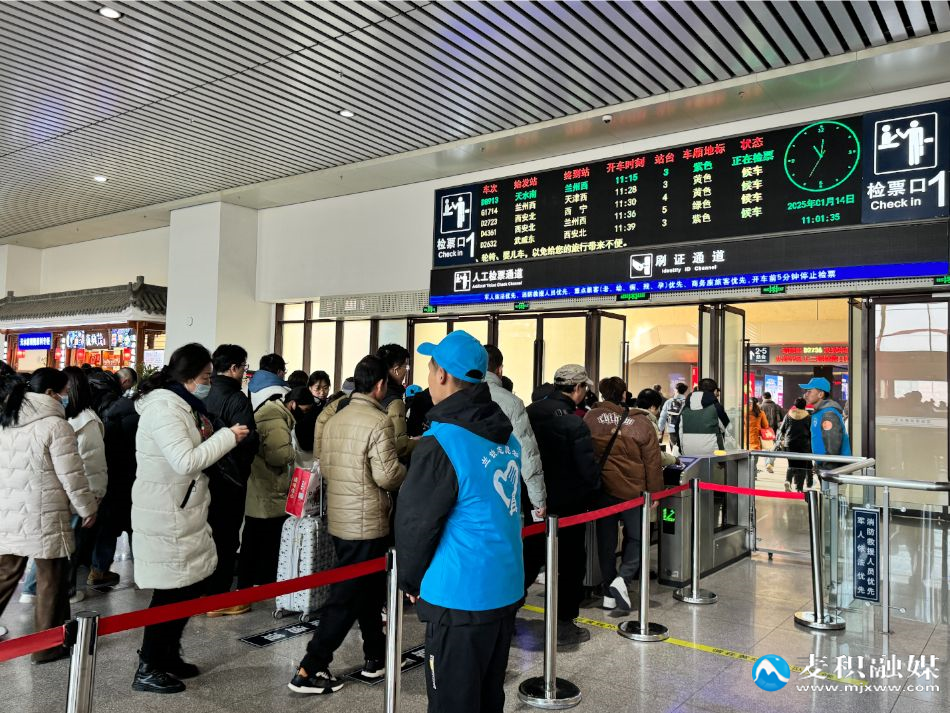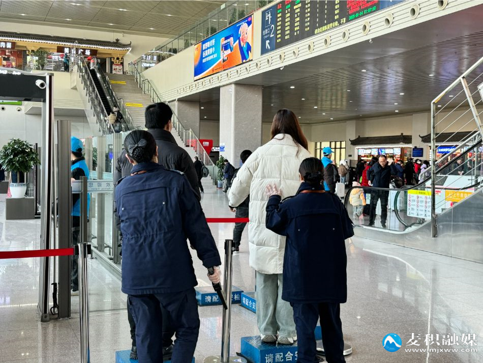 新天水讯 据麦积区融媒体中心消息 临近春节,天水南站人流量持续增多,进站检票口挤满了正在排队安检的旅客。返乡群众拖着大小行李箱,踏上了回家的旅途。