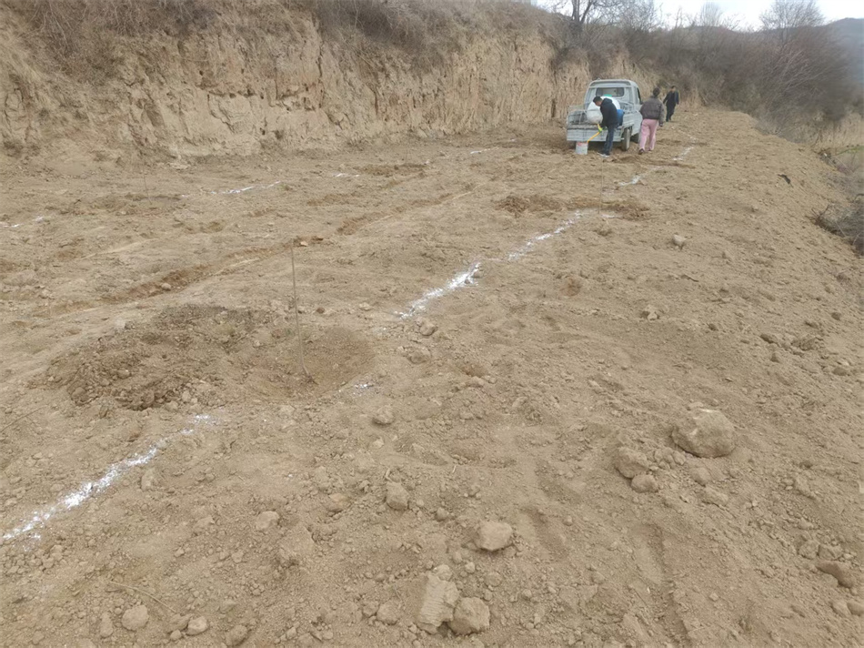 藉口镇2025年低质低效果园改造共涉及新尧、石泉、船北等18个行政村,计划改造面积2061.98亩。连日来,镇村干部抢抓春季转暖、气温回升的有利“天时”,按照“高标准建园,高效率推进,高质量实施”要求和“统一建、分散管、抓苗木、保质量”原则,以新尧千亩老果园示范点打造为引领,针对老果园树龄老化、挂果率低、产能衰退、病虫害等问题,按照果业部门技术指导,采取花牛苹果乔砧短枝栽培与大樱桃新优品种宽行省工栽培方式,结合光热及立地条件,将放牛、藉秦山片区核桃等低质低效老果园改造为大樱桃、苹果、西梅等高产果品,优化果树品种结构,提升果园综合产能。目前已完成1649亩老果园打点、种植、覆膜工作,剩余改造任务正在加紧实施中。