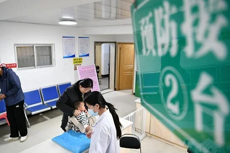 △10月25日,安徽省阜阳市阜南县疾病预防控制中心医务人员在为幼童开展秋冬季流感疫苗预防接种。