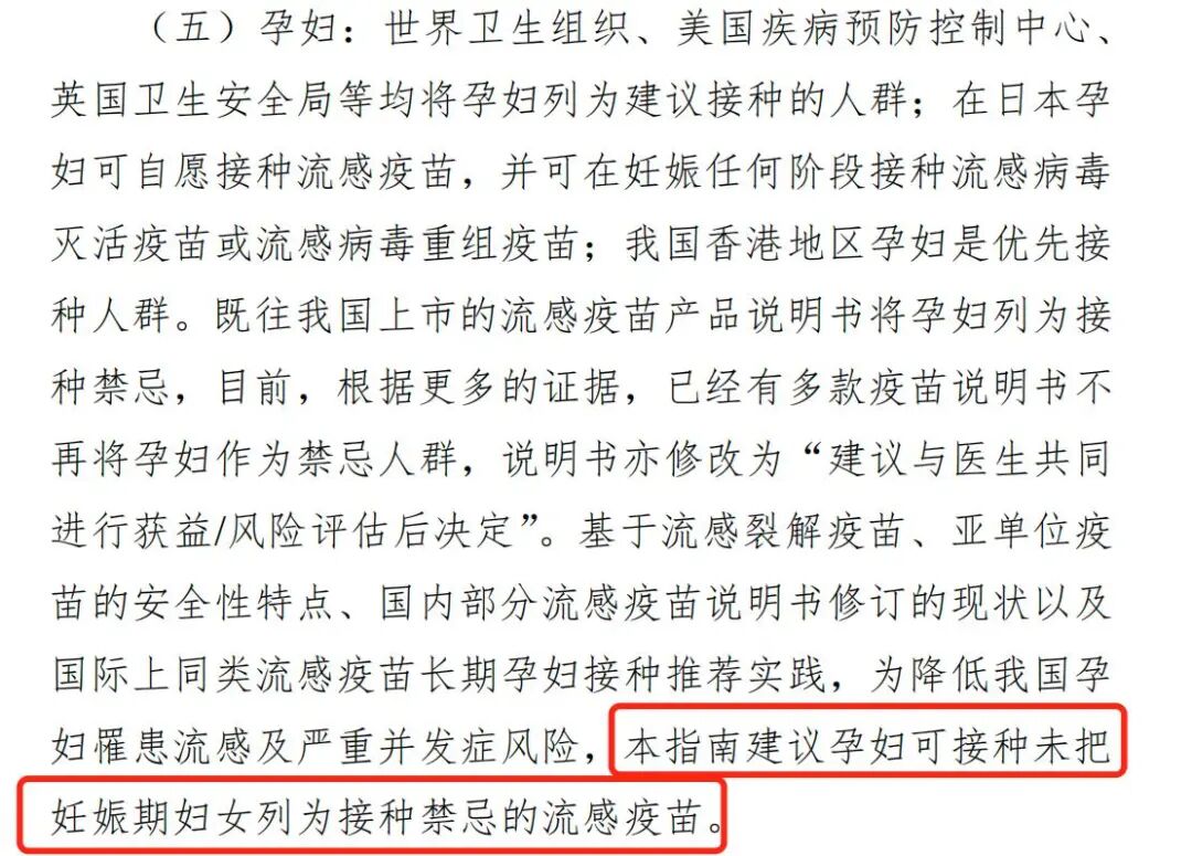 因此,为降低我国孕妇罹患流感及严重并发症风险,指南建议孕妇可接种未把妊娠期妇女列为接种禁忌的流感疫苗。