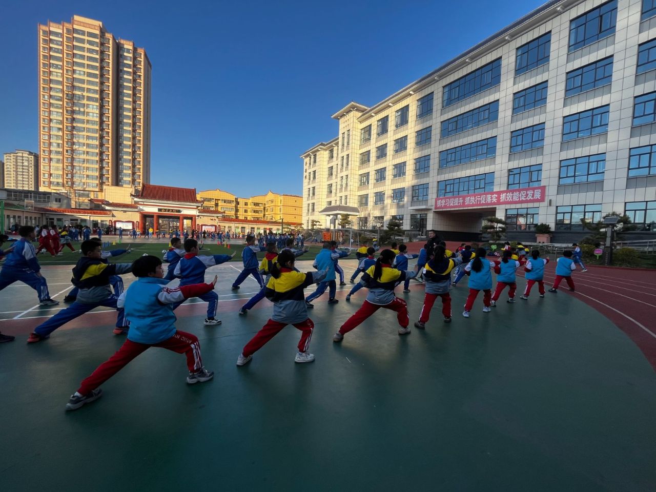 体育类活动注重增强学生体质,培养团队协作精神,设置了篮球、足球、武术等社团。篮球场上,学生们奔跑、传球、投篮,动作规范且充满活力,在对抗与配合中提升了球技,也学会了团结协作;足球场上,小球员们奋勇争先,攻防转换间展现出顽强的拼搏精神;武术社团,学生们一招一式刚劲有力,在传承中华传统武术的同时,锻炼了意志品质。各项体育活动不仅让学生们释放了活力,更培养了他们坚韧不拔、永不言弃的精神。