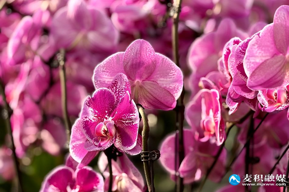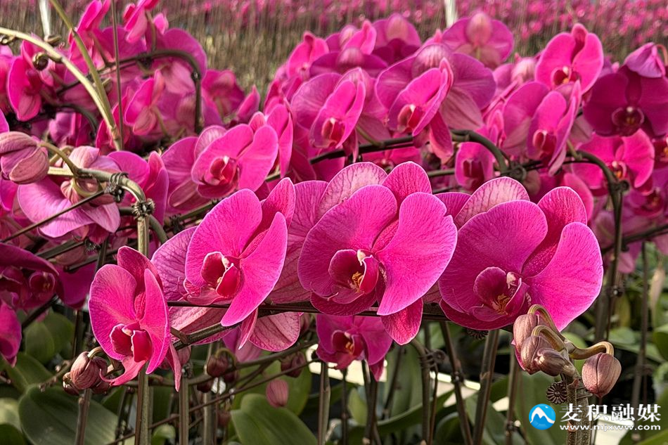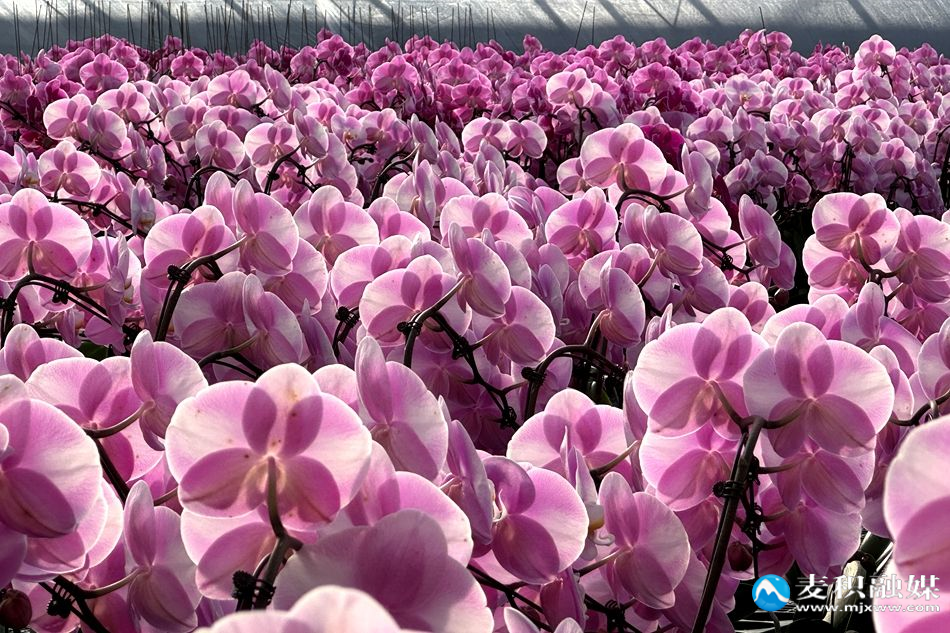 新天水讯 据麦积区融媒体中心消息 寒冬时节,位于麦积区中滩镇的天水市新嘉卉农业科技有限公司蝴蝶兰种植基地内暖意融融、生机盎然。九个标准化设施大棚里,万株蝴蝶兰竞相吐艳,紫的典雅、粉的温婉、红的艳丽,花姿摇曳间尽显魅力;工人们有条不紊地整理花材、分拣分级、包装装箱、装车发货,一派产销两旺的繁忙景象,为乡村产业振兴注入了鲜活动力。