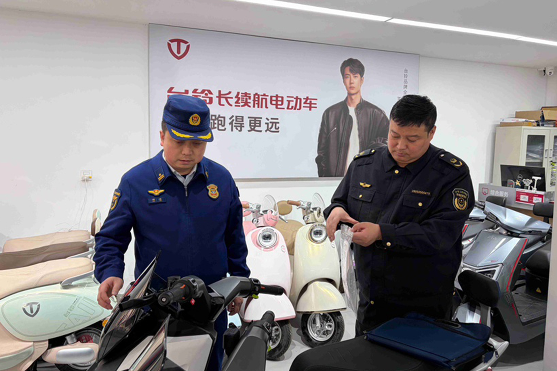 专项检查组先后深入电动自行车专卖店、品牌销售点、维修店等地,通过查阅资料、现场检查、询问负责人等方式,重点检查经营者是否依法取得营业执照,是否存在超范围经营行为,在售电动自行车是否获得强制性产品认证(CCC认证),产品标识、标牌是否清晰规范,标注信息(如生产厂家、型号、执行标准、电池类型等)是否与认证证书一致。督促经营者严格落实进货检查验收制度,建立完整的进货台账,确保产品来源可溯、质量合格。