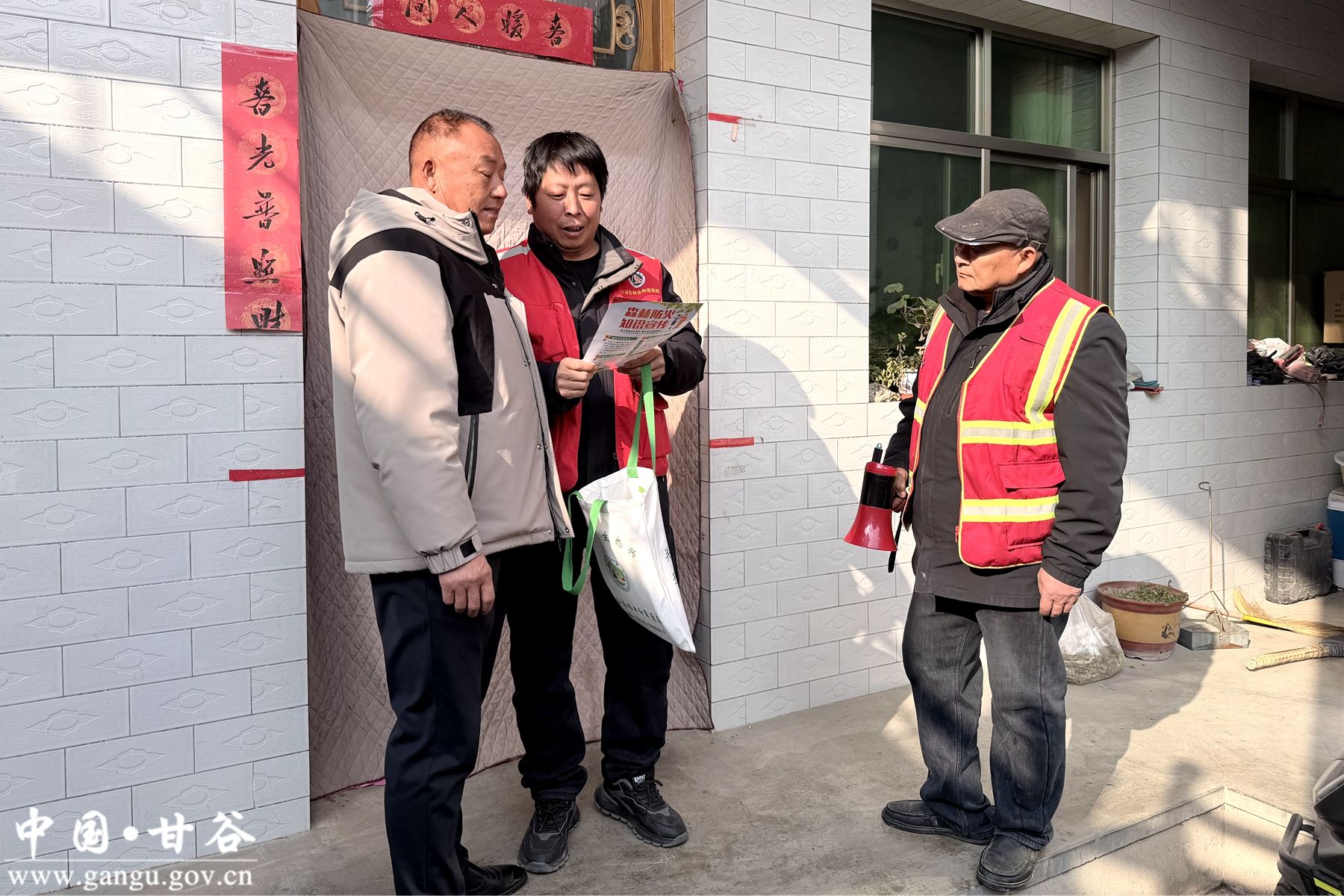 “护林员常给我们讲森林防火的重要性,我们不光自己记牢,还会反复叮嘱孩子,上山绝不带火种,保护森林是每个人的责任。”甘谷县大像山镇模范村村民张宗铭的话,道出了当地群众的防火自觉。入冬以来,甘谷县将宣传引导作为防火第一道防线,全方位拓宽宣传渠道:流动宣传车穿梭于林区沿线、乡村街巷,全天候高频次播报森林防火法律法规与安全常识;微信群、村社大喇叭实时推送防火提示,让安全意识渗透日常;干部职工、志愿者深入林区周边村庄开展“敲门行动”,用通俗易懂的方言土语讲解野外用火危害,手把手普及防火知识,推动“森林防火、人人有责”的理念深入人心。在各进山路口,工作人员严格落实登记扫码、火种检查等防控措施,牢牢守住山林“入口关”。