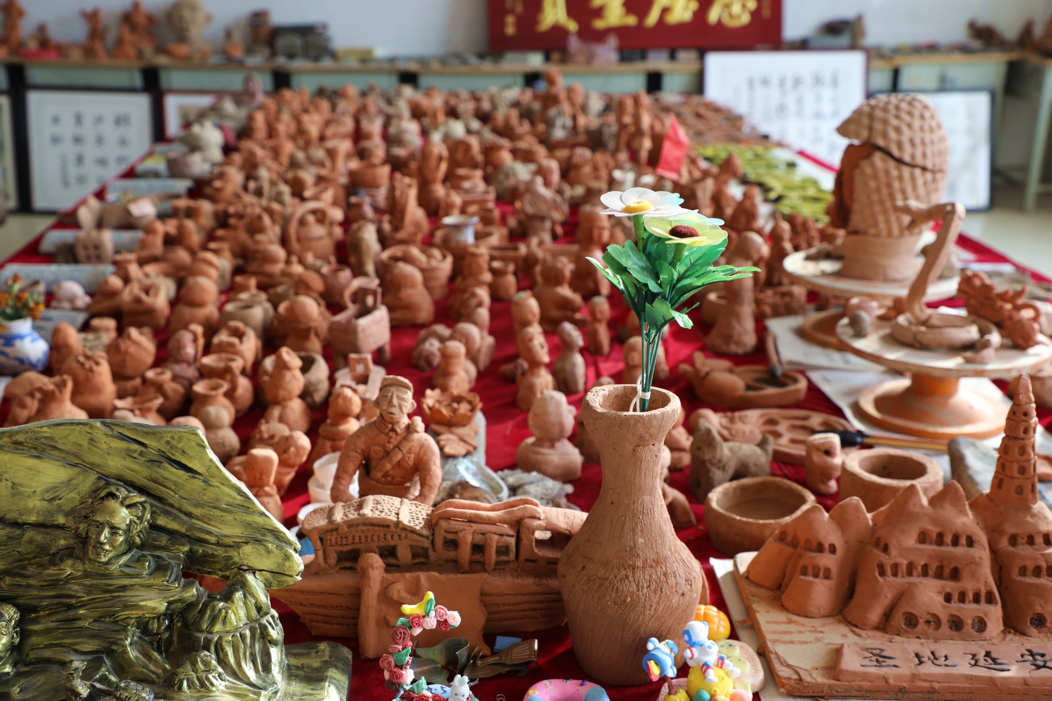 最火的还要数泥塑工作坊!在这里,普通的泥土能变成红色故事陶印、民俗文化摆件,累计2000余件学生作品出炉,800余件优秀作品被重点展示。2021年,100枚刻有党史故事的陶印惊艳亮相;2023年,泥塑刻字拓片作品拿下省级大奖;2024年泥塑工作坊相关省级课题《乡村学校泥塑教学校本课程开发和研究》结题。