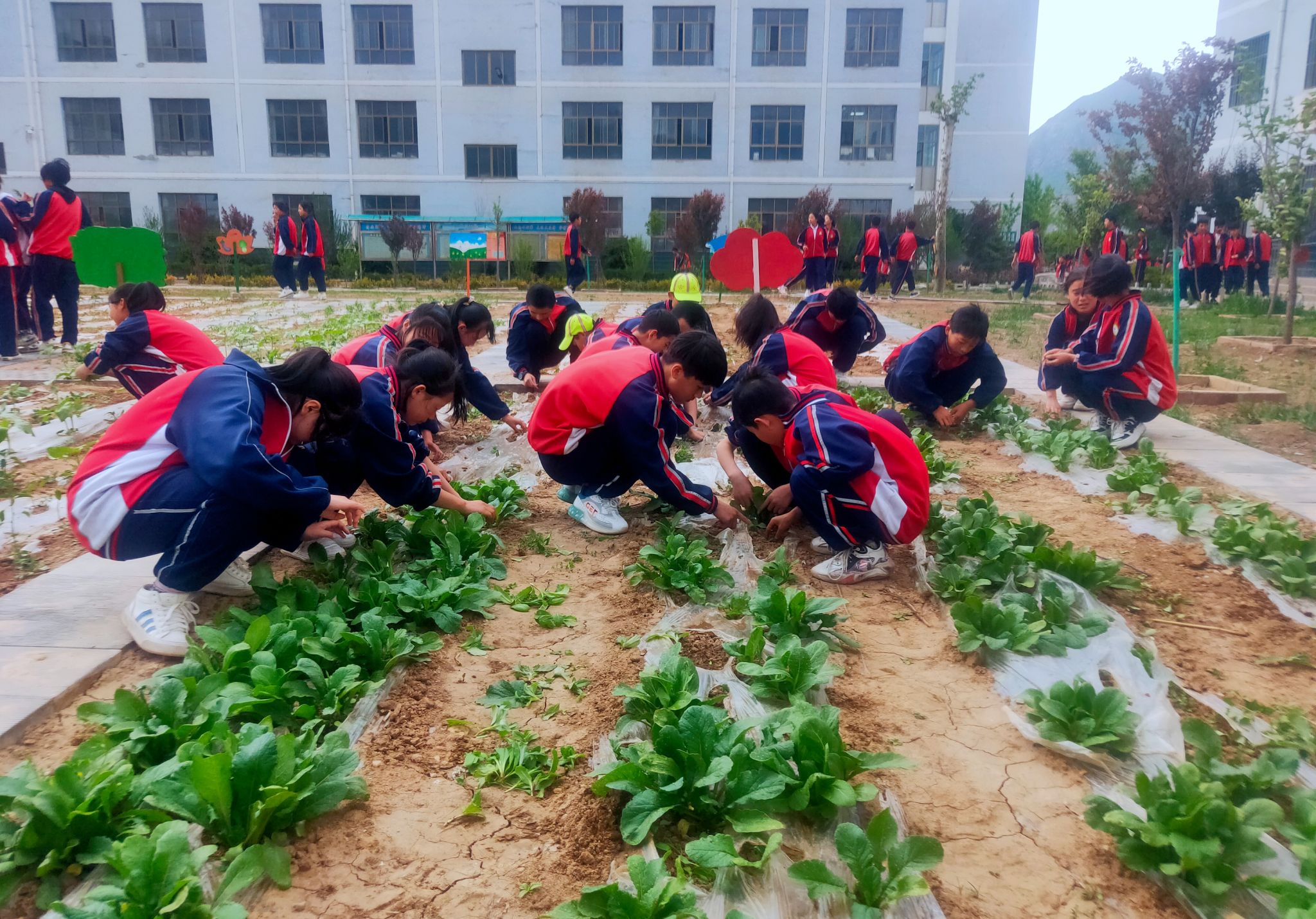 校园里的省级劳动教育实践基地,就是同学们的“快乐农场”——翻土、播种、浇水、丰收,每个班级都有专属“责任田”,大家全程参与农作物种植,在汗水中体会“一粥一饭来之不易”的深刻内涵。
