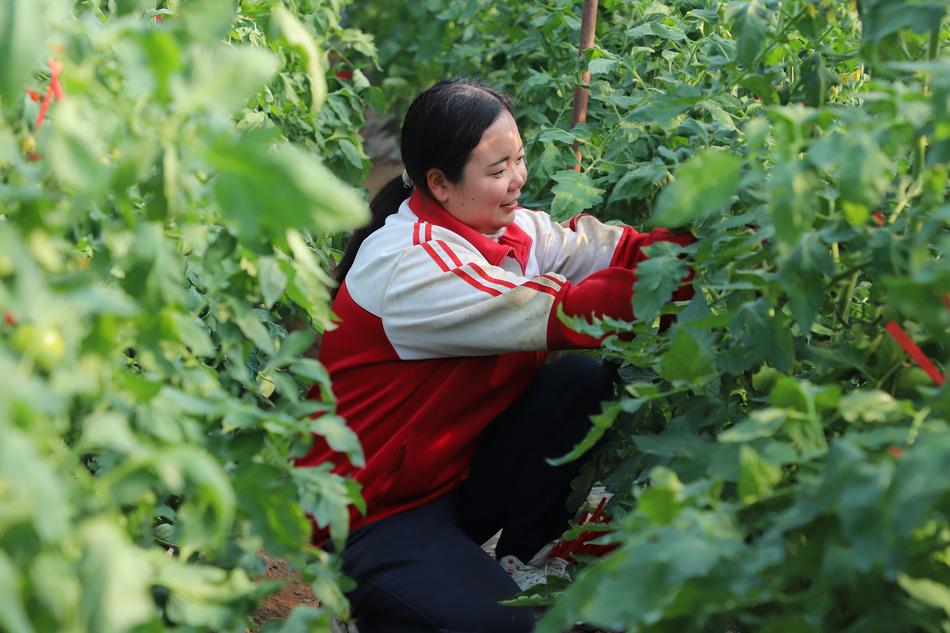 在山丹镇车岸村集体经济产业园的西红柿大棚里,一行行绿意盎然的藤蔓攀架而上,反季节种植的西红柿挂满枝头,果实饱满、色泽鲜亮。村民们正进行疏叶、吊蔓等管护作业。“这一茬西红柿长得特别好,再有半个月就能采摘上市了。”一位正在劳作的村民笑着说道,脸上洋溢着对丰收的期盼。