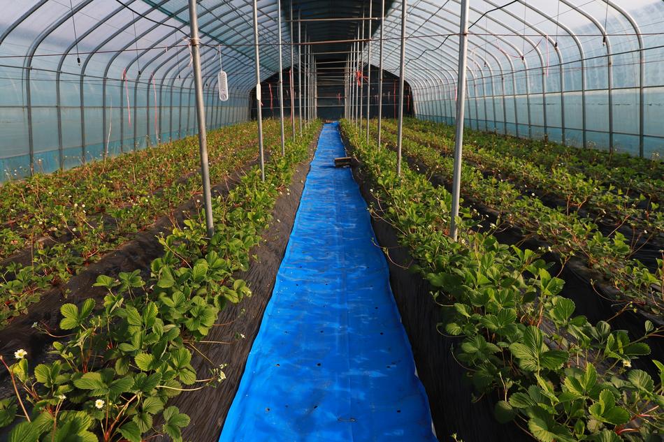 不远处的草莓大棚又是另一番景致:绿叶丛中点缀着朵朵白花,部分花朵已悄然结出青绿幼果,散发出阵阵清香。种植户介绍,眼下草莓正值盛花期,通过科学调控温光条件,预计元旦前后便可成熟上市,为节日市场带来一抹新鲜的甜美。