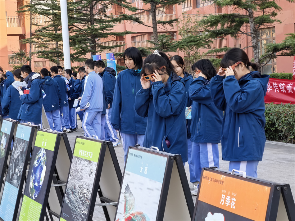 活动中,灵动的机器人伴随着音乐做出舞蹈、列队等一系列精准动作,引起现场学生们阵阵欢呼与惊叹。在VR眼镜、3D展板专区,学生们通过红蓝眼镜观测宇宙星座、远古恐龙、深海生物等抽象的自然与宇宙现象,给她们带来全新科普体验。